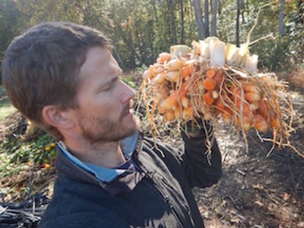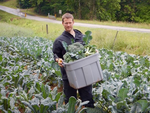 Jamie grew up in Polk County,  NC, learning the meaning of hard work while cutting hay and mending  fences on the family horse farm.  As a student of music, yoga, and  permaculture design, he strives to apply observation, creativity,  discipline, and care for the land in his approach to farming.